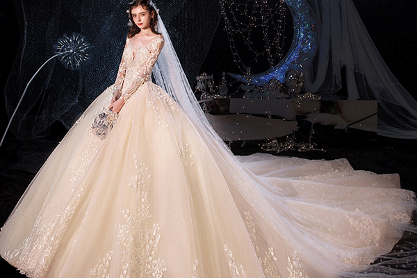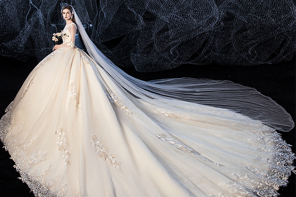 对于身材娇小的新娘子婚纱的款式尽量选择相对合身的,庄重而又拉长线条的启迪婚纱,婚纱的款式尽量不要选择过长的。若是选择到膝盖以上的短款礼服,也许更增添灵气哦。一定不适合大拖尾,你可以想象一个矮小的新娘穿着一个大拖尾婚纱的那种感觉,真的很不优雅哦~