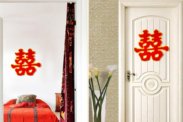 喜庆婚礼文化:小区有其他喜字未脱落的,不要撕掉,加大一号贴在上面,寓意喜上加喜,要从外往里贴,寓意添人进喜;贴双喜寓意好事成双。