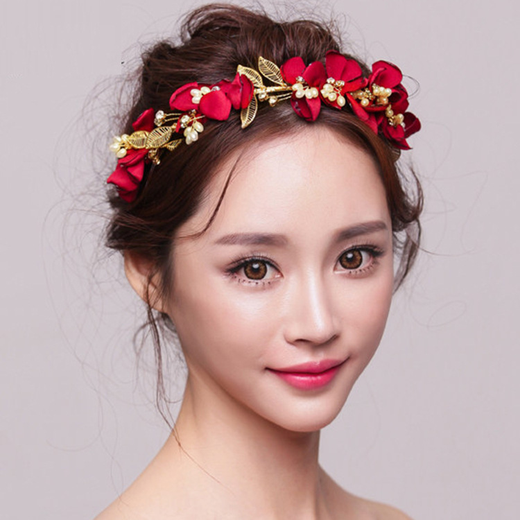 新娘手工头饰 金叶头花手工发箍 旗袍敬酒服配饰