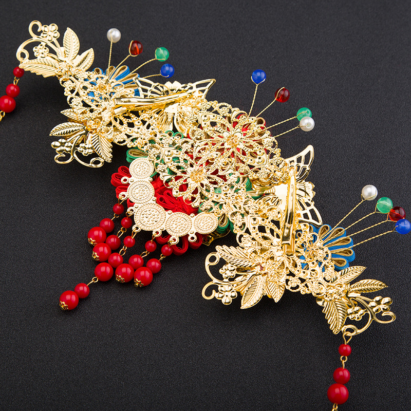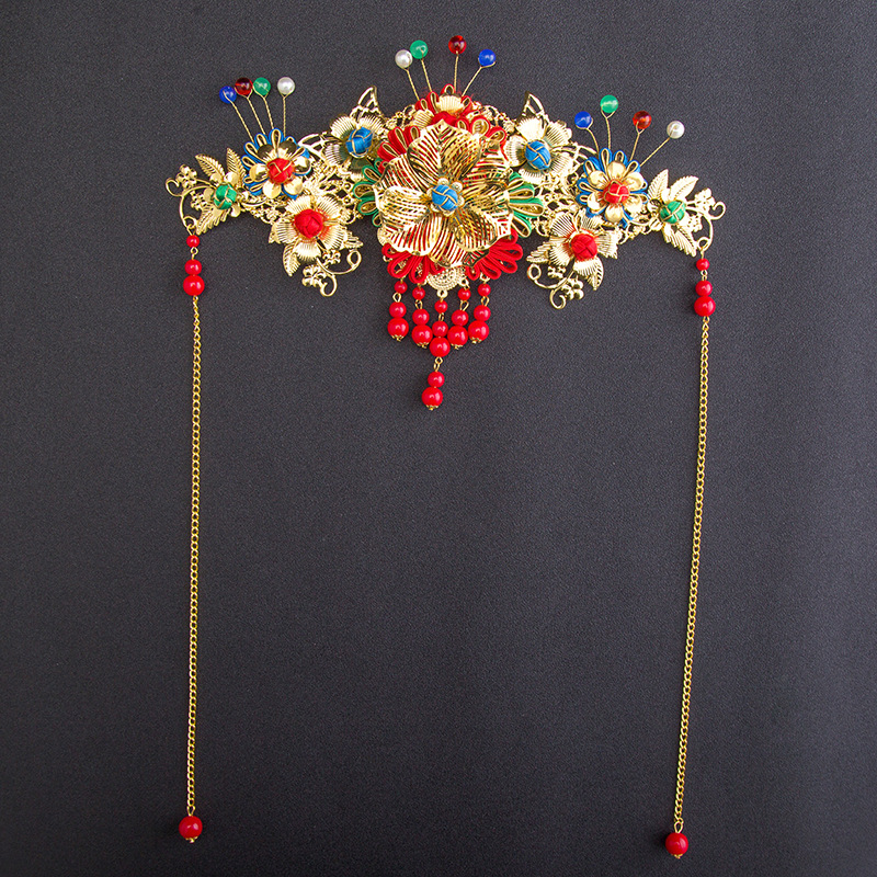 中式结婚凤褂发饰凤冠旗袍头饰批发 中国风红色古典新娘古装饰品