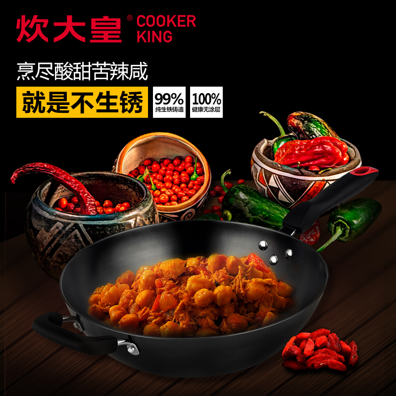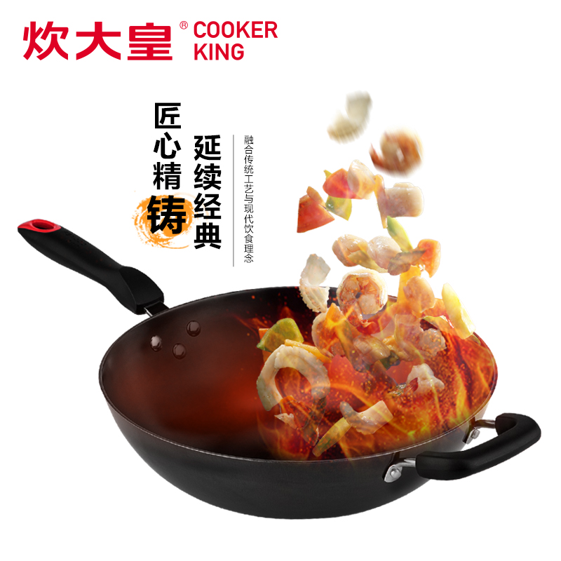 炊大皇传世无涂层铸铁锅32cm电磁炉通用