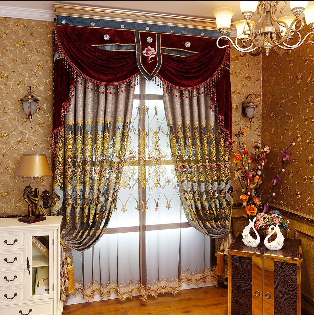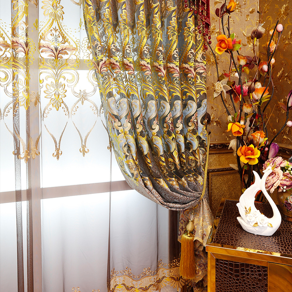 客厅奢华绣花雪尼尔窗帘