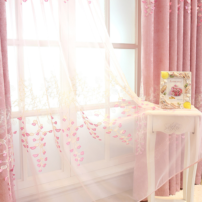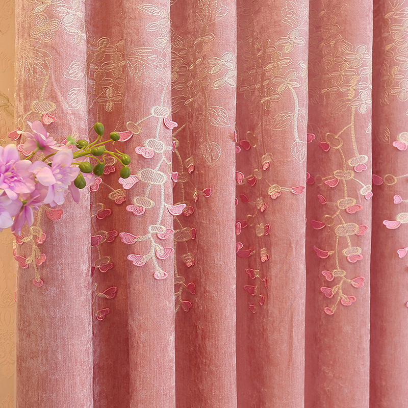 粉色雪尼尔卧室浮雕窗帘