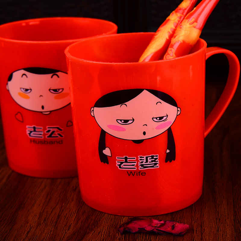 结婚老公老婆漱口红色情侣杯子