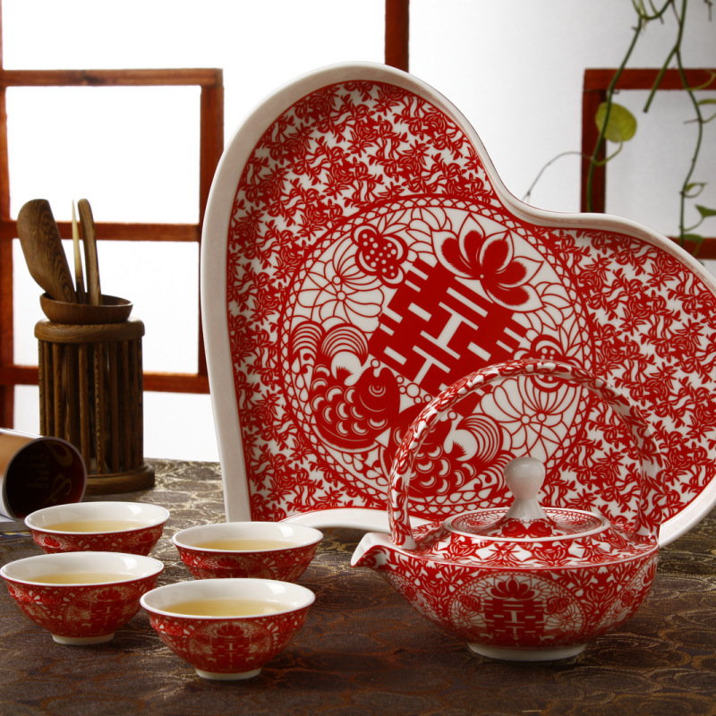 新婚新人敬茶用品心形盘全套茶具