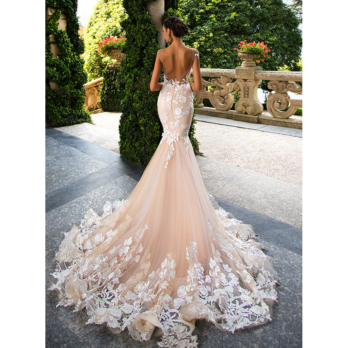 性感欧美镂空一字肩鱼尾婚纱