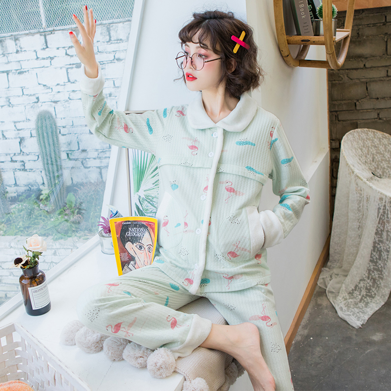 保暖夹层秋冬哺乳月子服