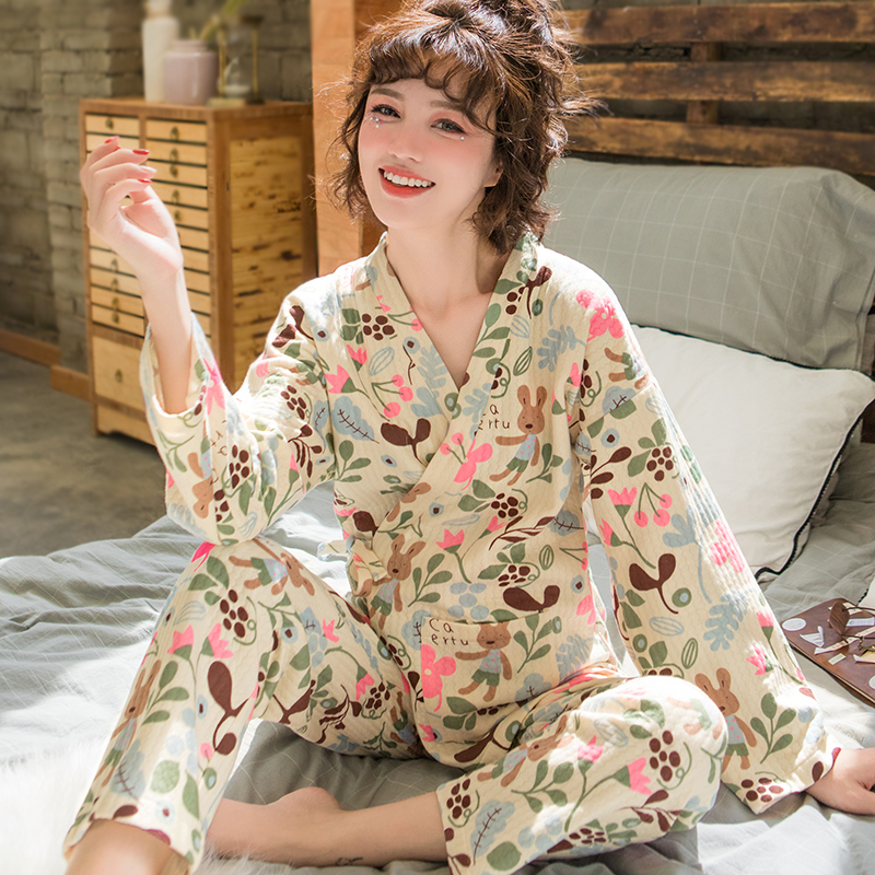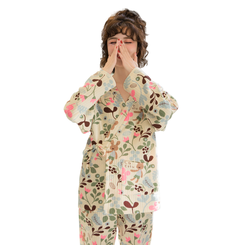 新款时尚纯棉夹棉月子睡衣