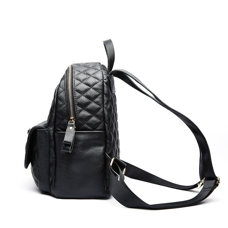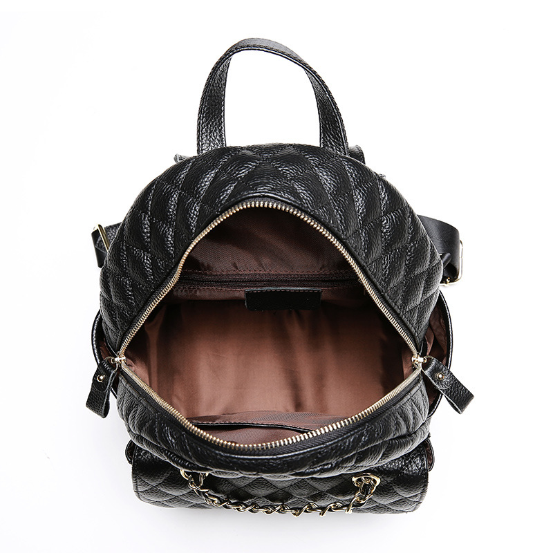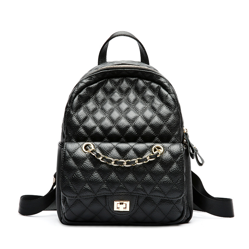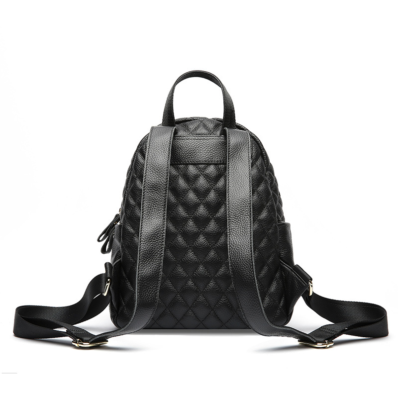 【黑色】真皮小香风菱格双肩包时尚小背包