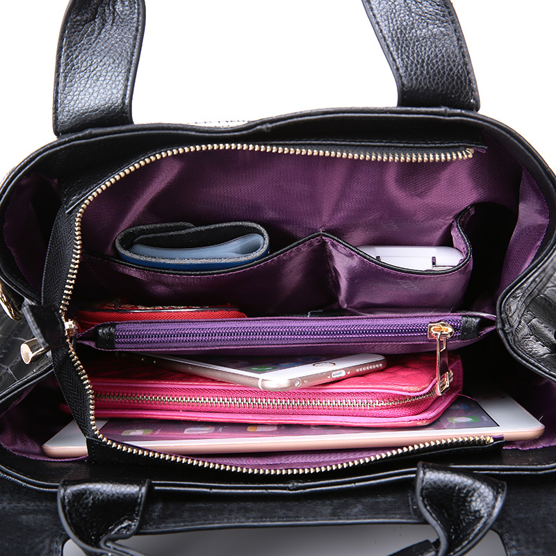 【黑色】石头纹欧美时尚牛皮女包