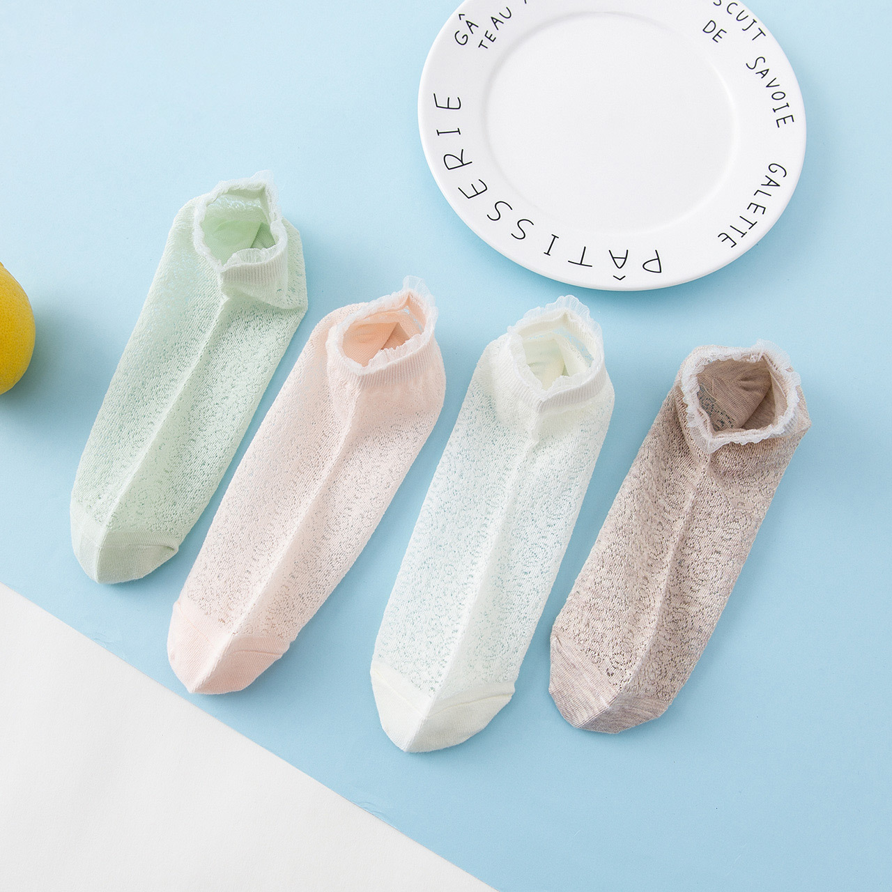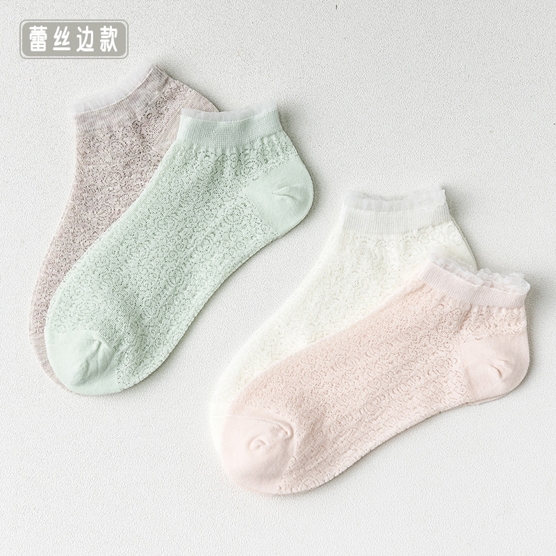 焦糖玛奇朵网眼船袜4双礼盒女袜,全网统一价24.8,点评抵金5元