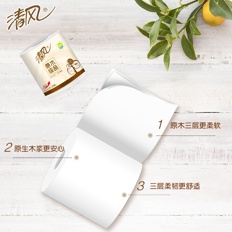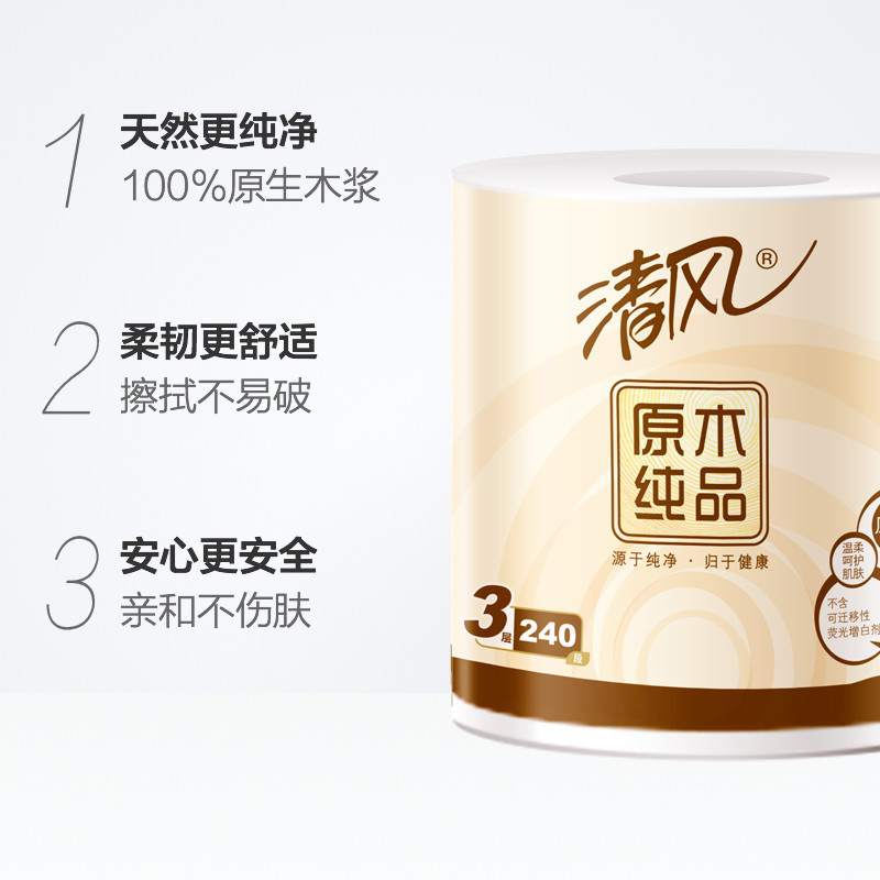 清风240段3层厚度空芯筒纸1提10卷,全网统一价:18.8,点评抵金1元