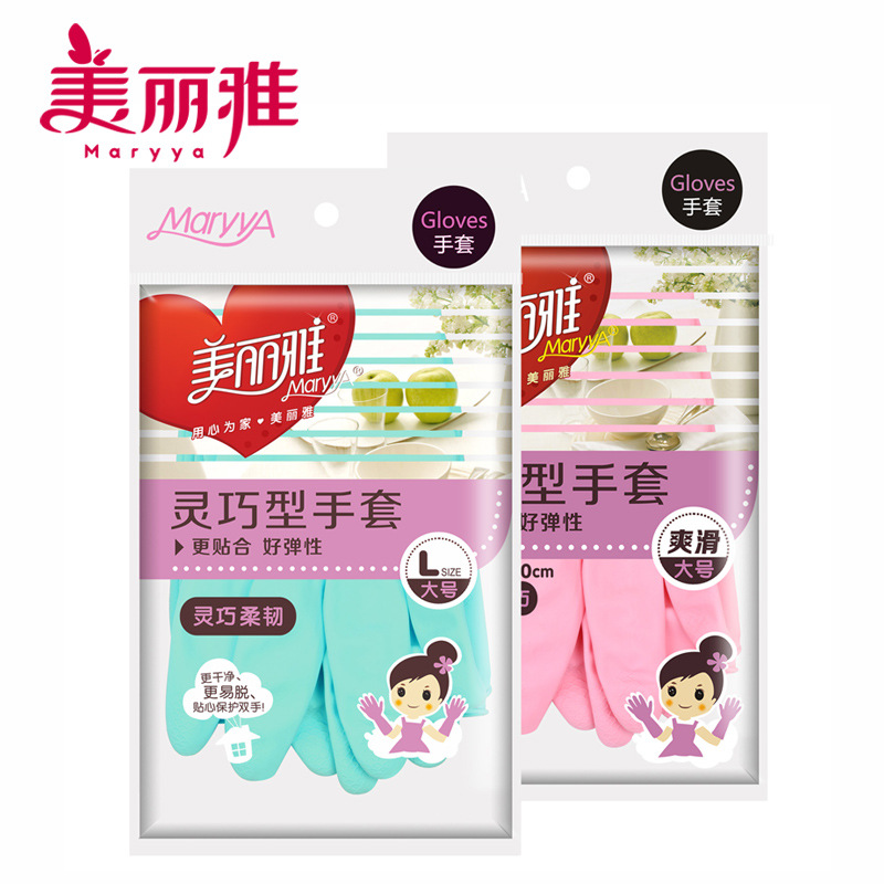 美丽雅灵巧型乳胶手套,胶皮手套, 防滑手套,洗碗,做卫生,保护好手。洗碗防水橡胶家务手套