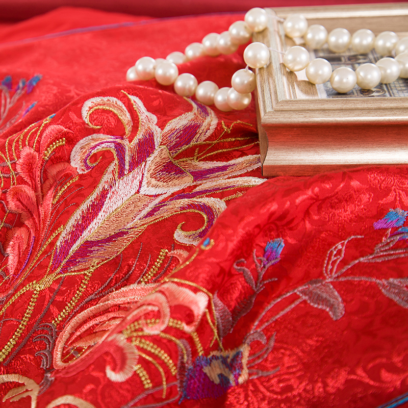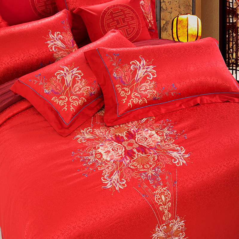 《心有灵犀》新娘嫁妆床品活性印染四件套,寓意女儿女婿婚后恩恩爱爱一生