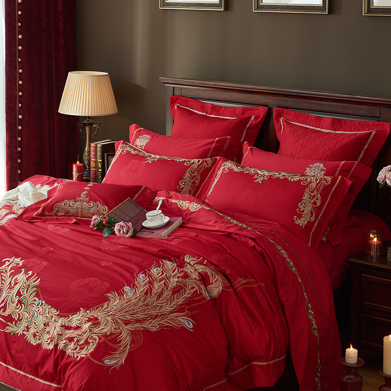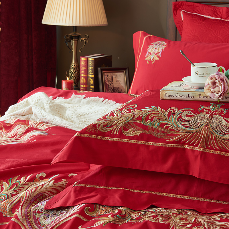 《鸾凤和鸣》新娘嫁妆床品活性印染六件套、十件套,寓意女儿婚姻幸福