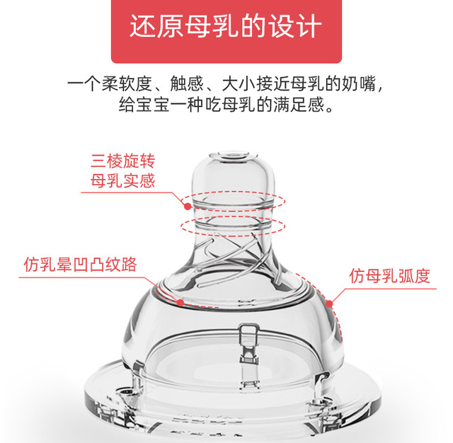 BERZ贝氏宽口径食品级硅胶材质柔软耐用仿母乳奶嘴一对,360度防胀气