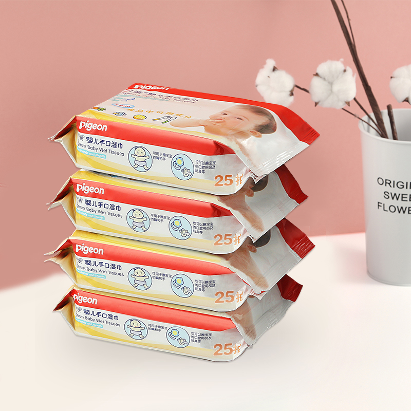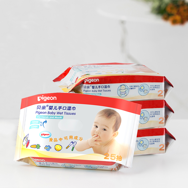 贝亲新生儿0-3个月手口专用小包湿巾25片*4包,无酒精、无天机、妈妈的爱