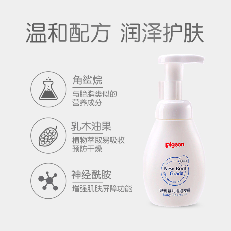 贝亲新生儿0-3个月用泡泡洗发露200ml,氨基酸配方,添加蚕丝胶蛋白,营养头发