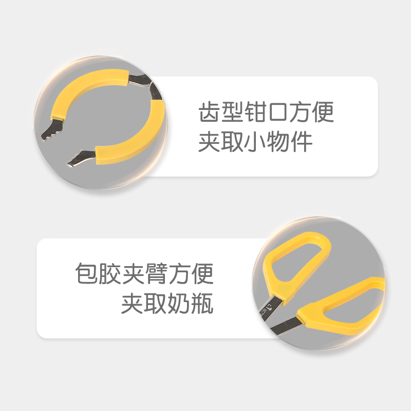 手柄部位不易热,夹取防滑设计,可深入各种消毒器皿底部,用后不生锈