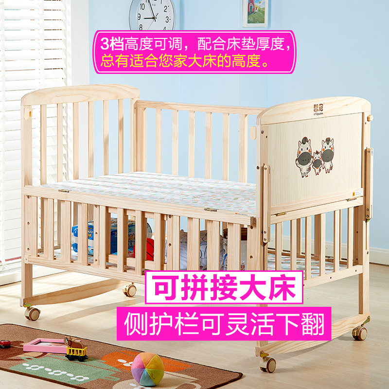 防污床头,新西兰松全实木打造而成,高度增加50厘米,方便妈妈抱起喂奶放下(无漆大床)
