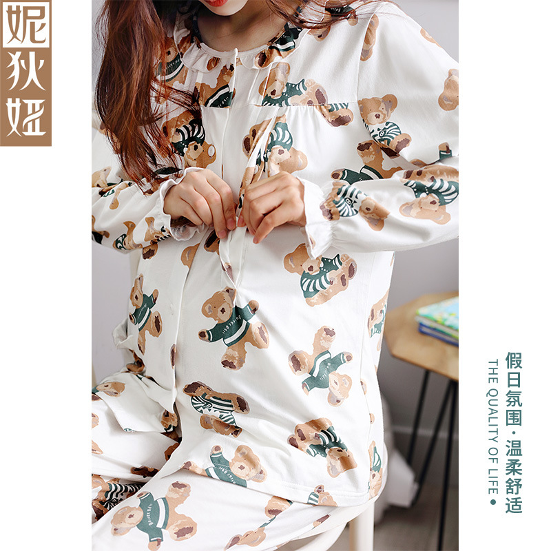 白色套装上印染小黑熊图案,适合婴儿视力分辨白和黑的生理特点,开发视力和智力