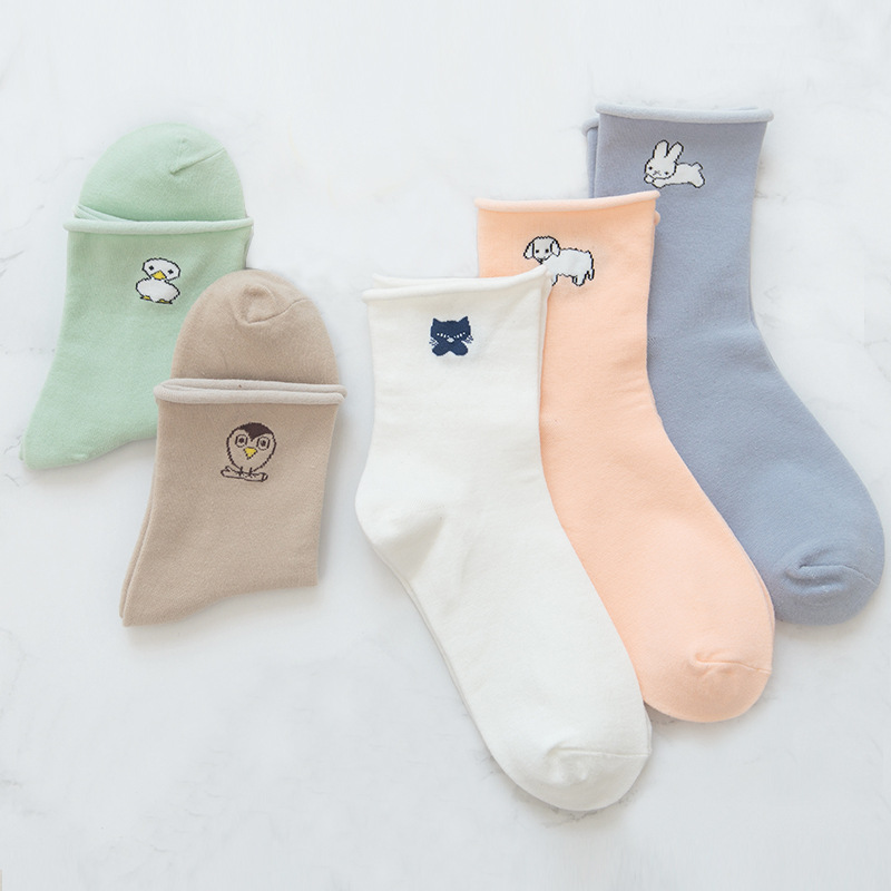 卡通卷边松口月子袜挡风保暖不勒腿,包跟双针加厚,韩系时尚,坐月子护脚