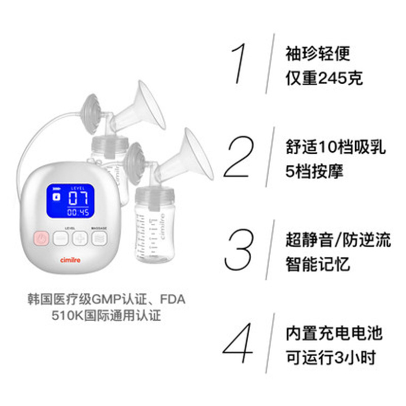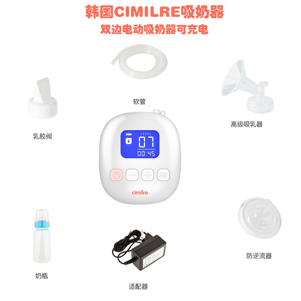 双边电动吸奶器,吸乳前给乳房柔和刺激按摩模式,呵护乳房吸干后乳为营养宝宝