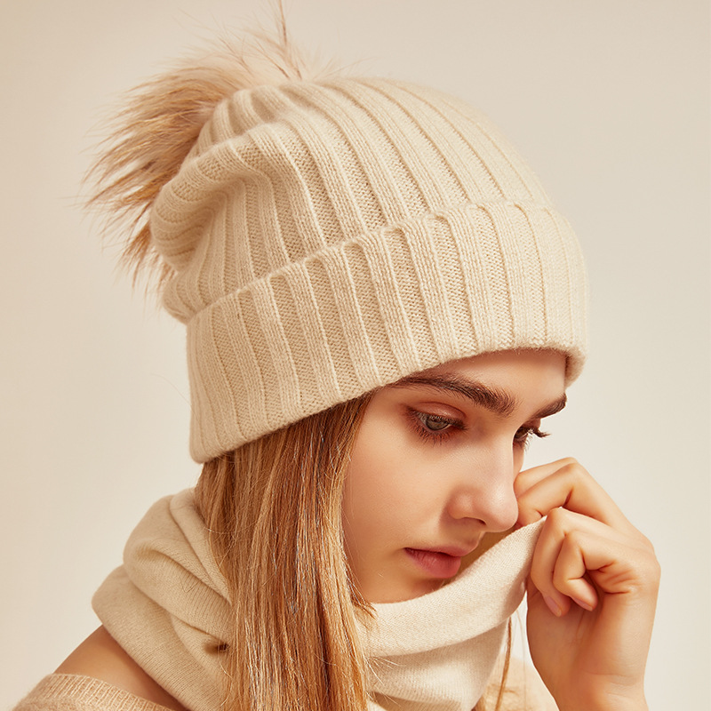 狐狸毛球装饰魅力无限,羊绒帽子温暖时尚,魅力和魅力和时尚叠加在一起