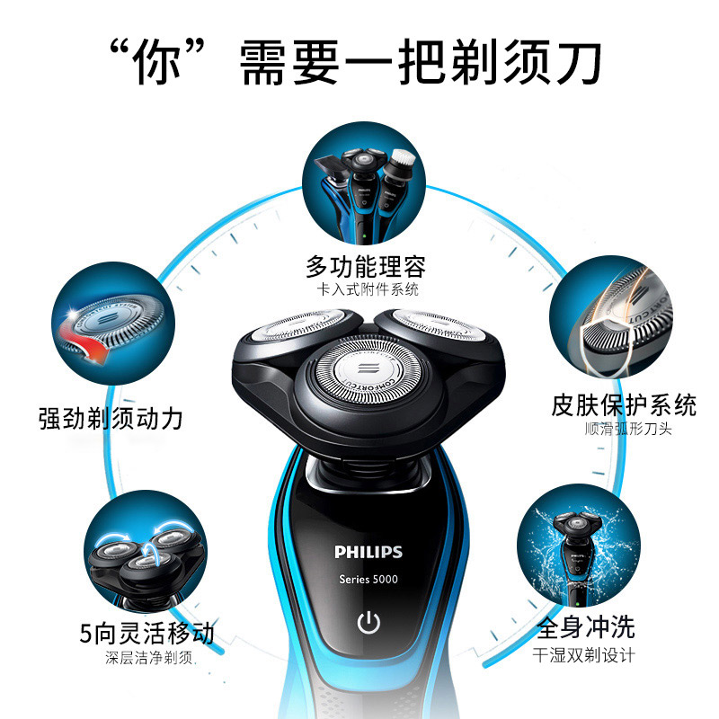 全身水洗三刀头干湿两用,品牌剃须刀是礼品的最爱,送给长辈夸你有面子
