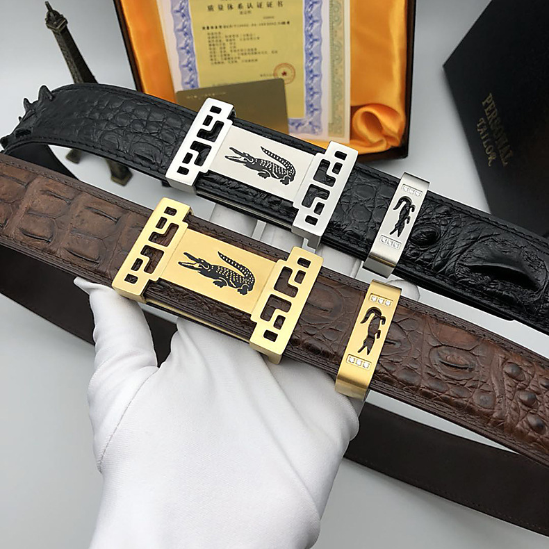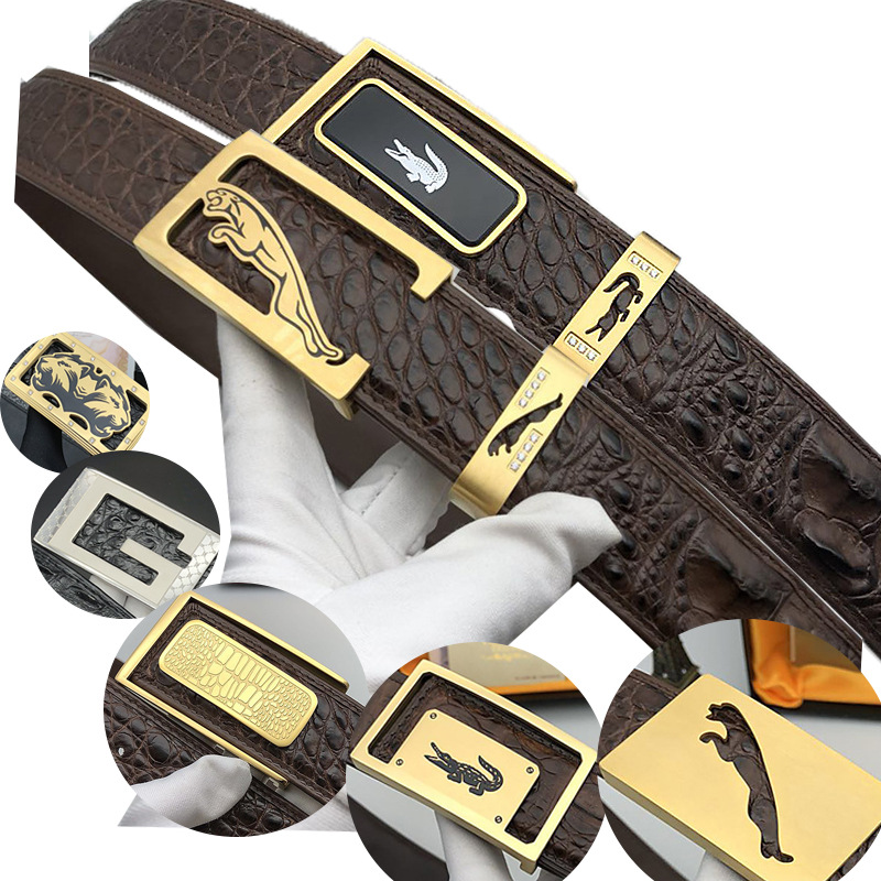 意大利时尚设计品牌,真鳄鱼骨皮平滑扣多款可选镶钻皮带环