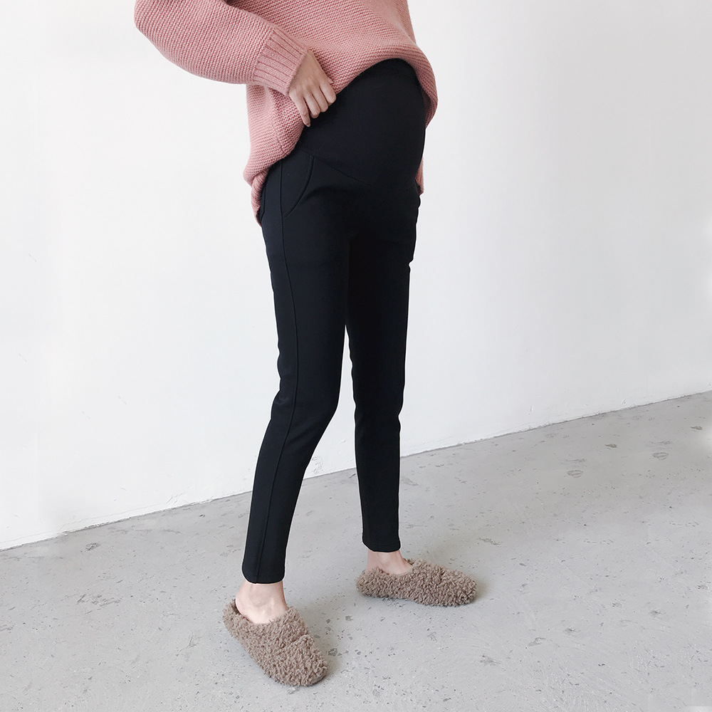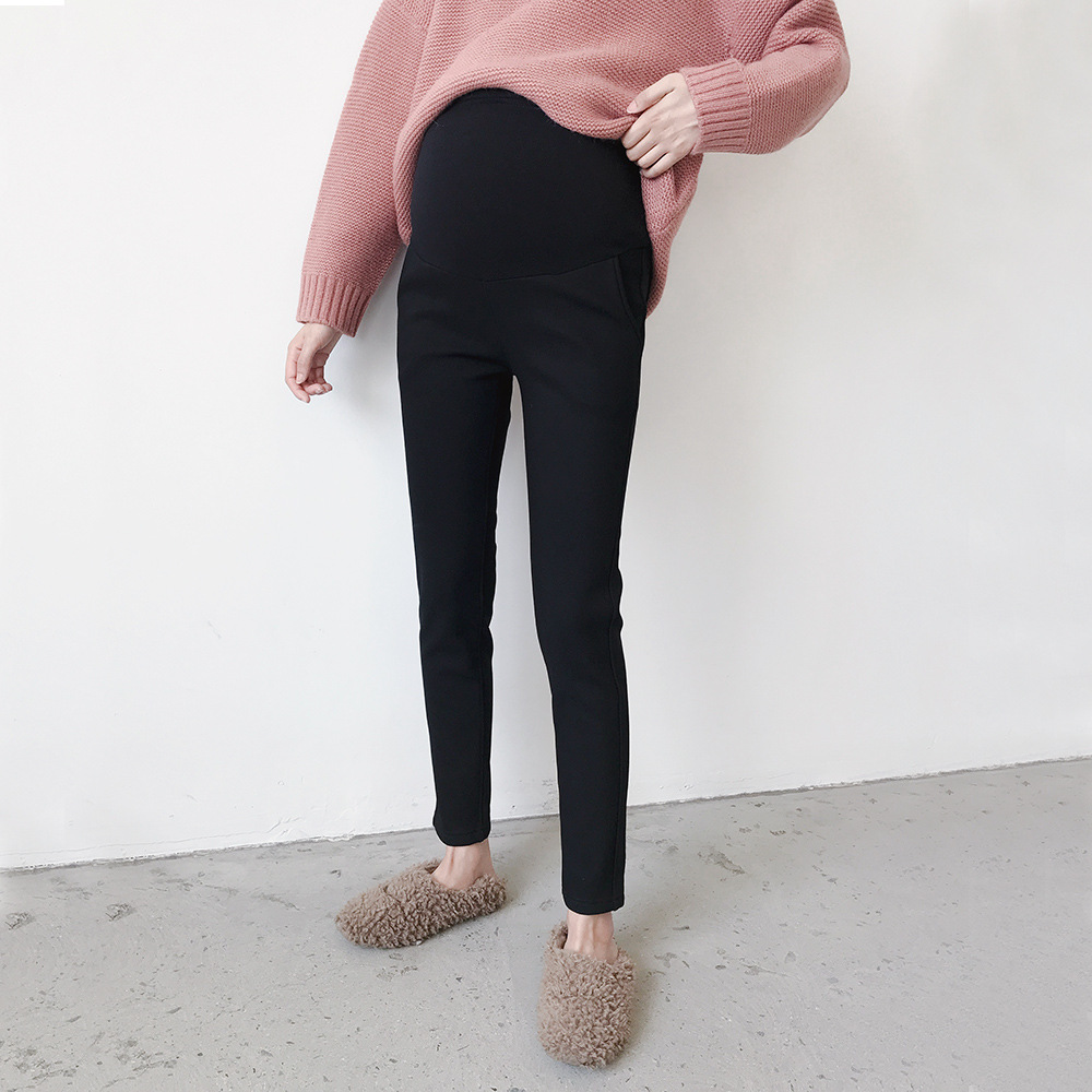 窄腿小脚冬季新款加绒加厚孕妇装弹力托腹裤,韩版孕妇裤百搭显瘦打底裤潮妈