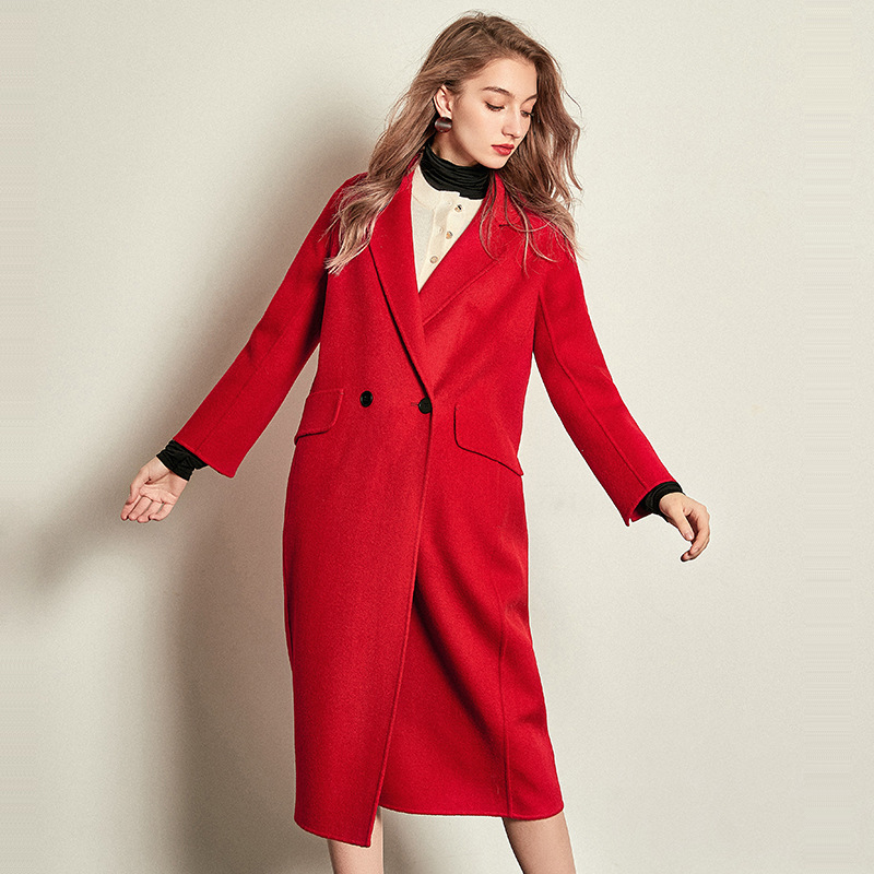 毛呢大衣女流行中长款双排扣气质毛呢外套时尚百搭休闲优雅气质毛呢外套