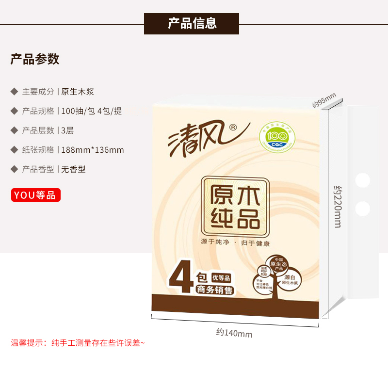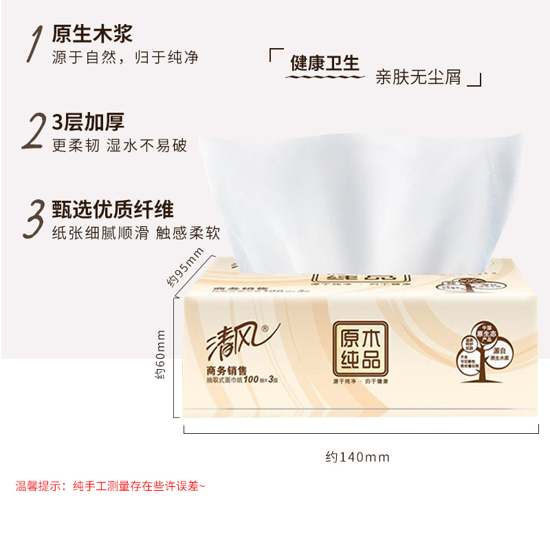 清风原木面巾餐巾纸3层100抽8包装,全网统一价17.82,点评抵金1元