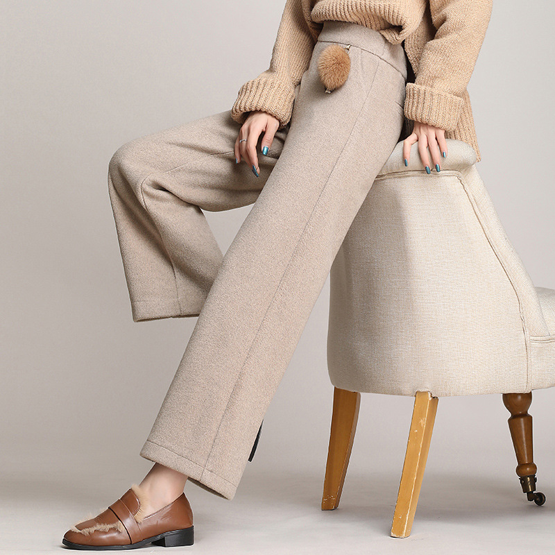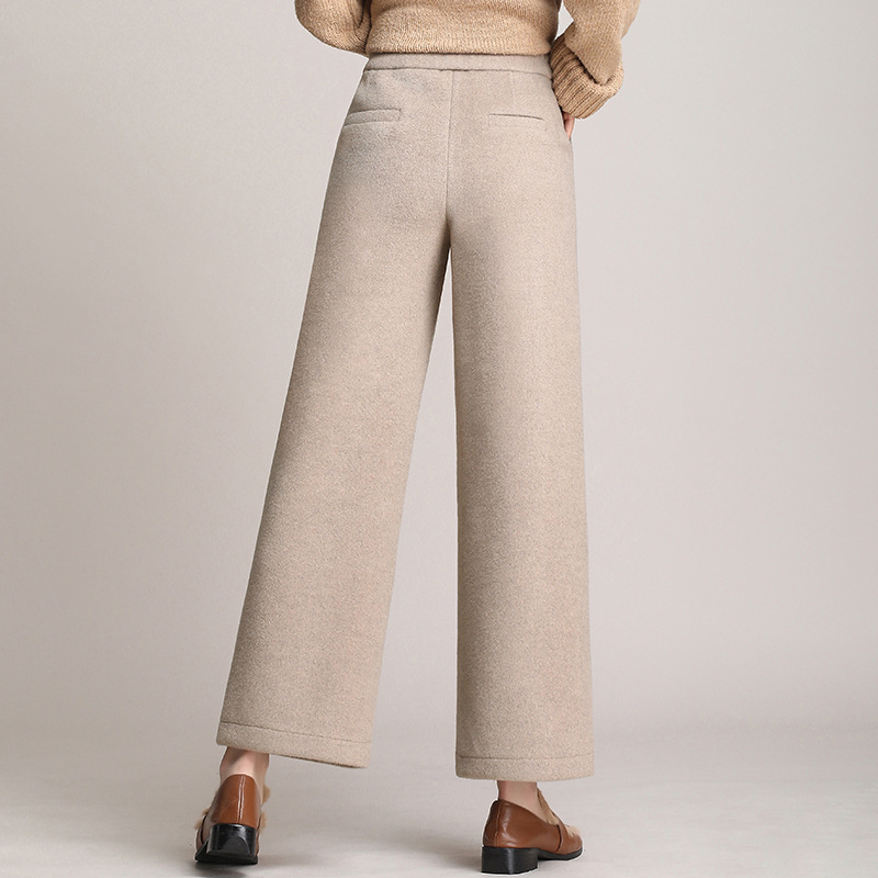 毛呢女装骆驼绒阔腿裤高腰直筒休闲裤加厚女裤