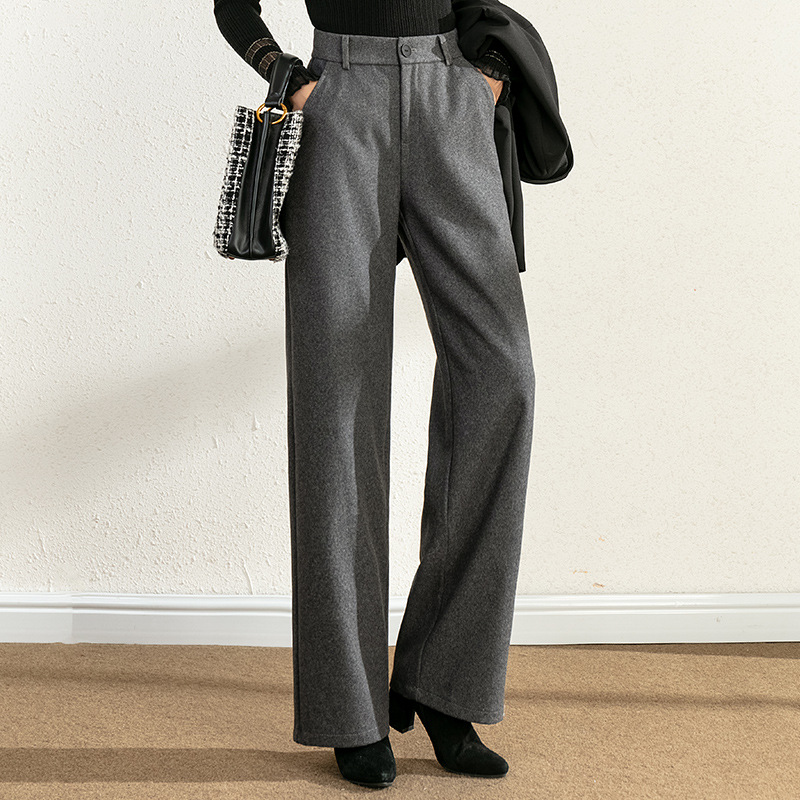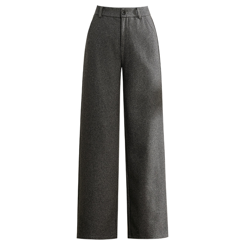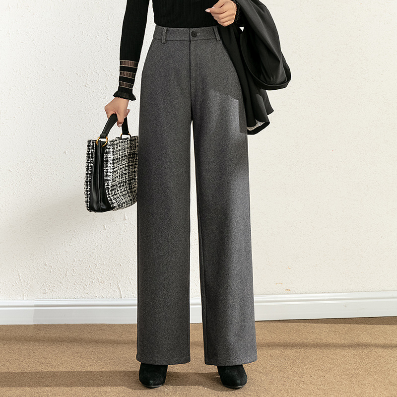 秋冬新款毛呢阔腿长款高腰垂感宽松直筒女裤