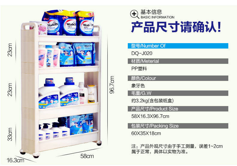 卫生间置物架落地马桶边洗漱用具移动整理架--聚爱城