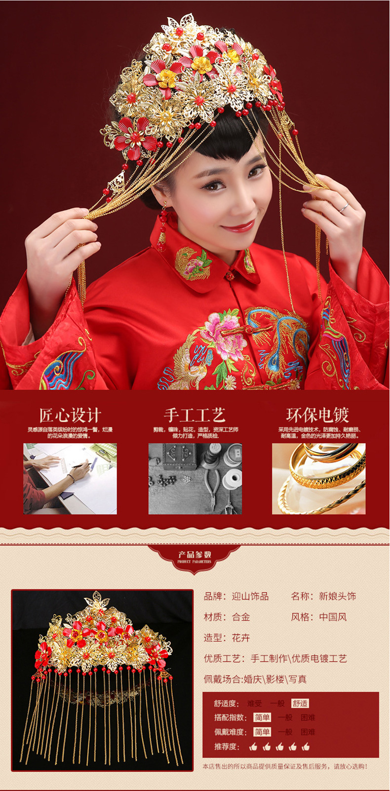 中式新娘头饰 古装发饰金属皇冠 喜庆中式龙凤褂头饰凤冠