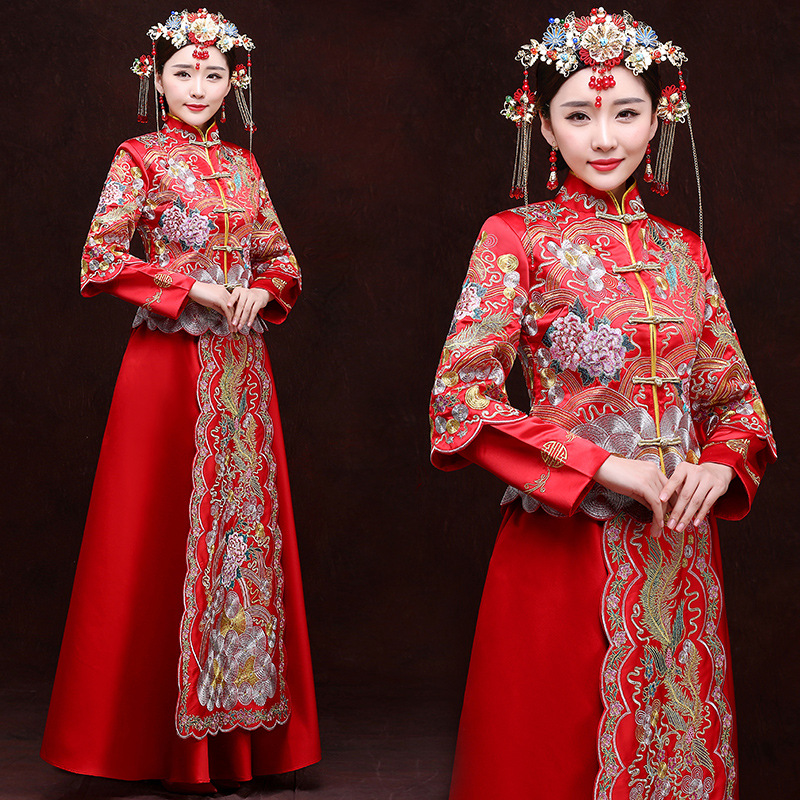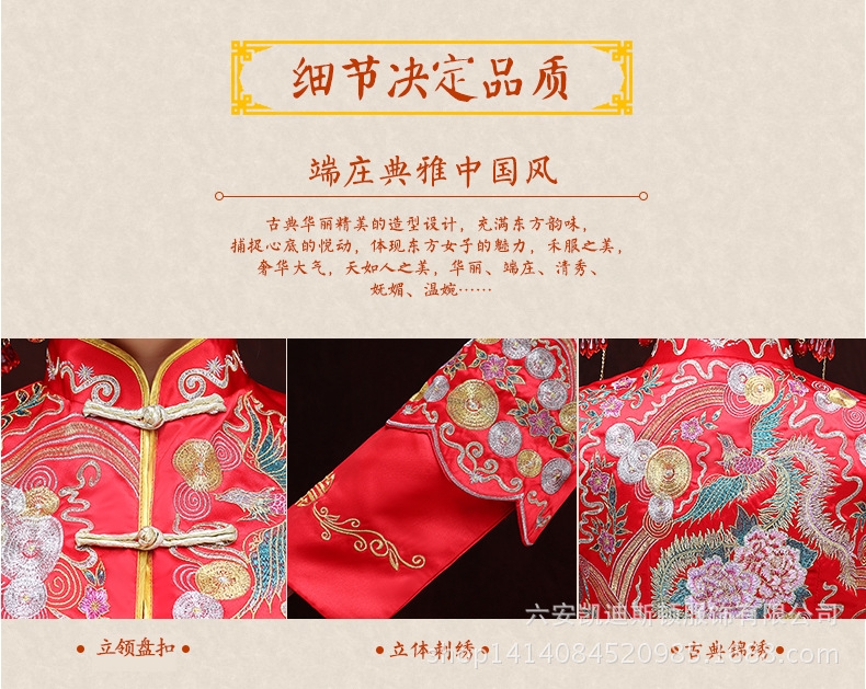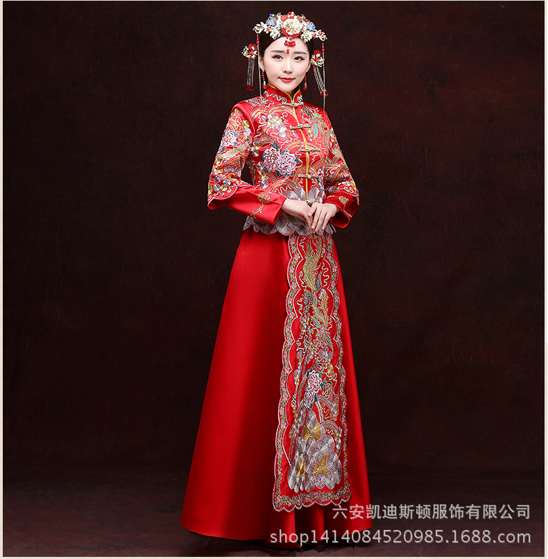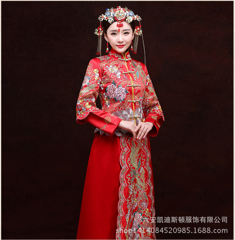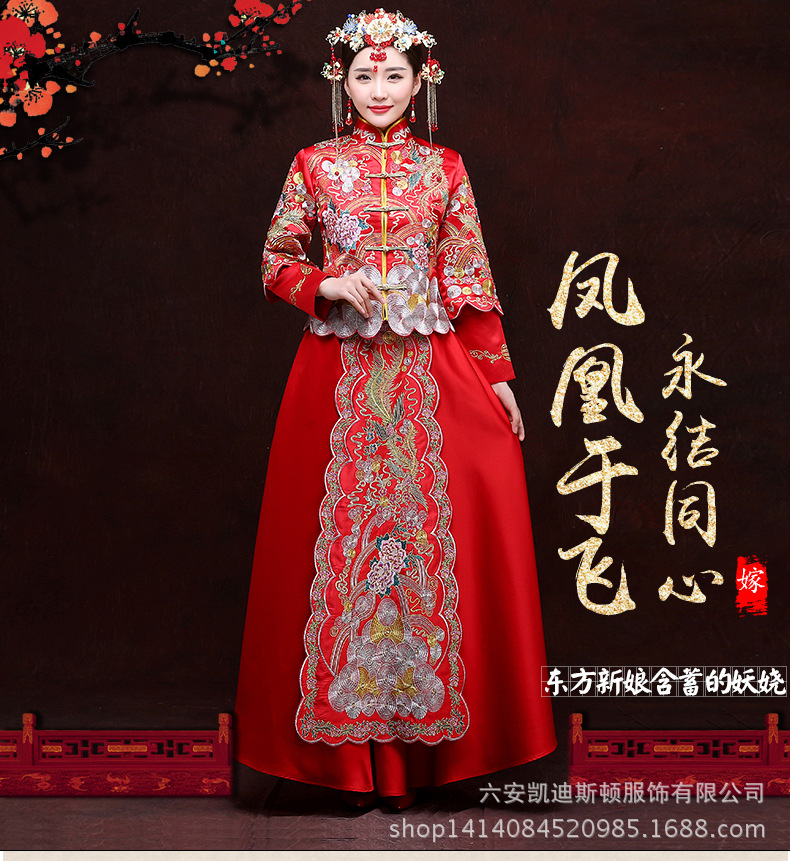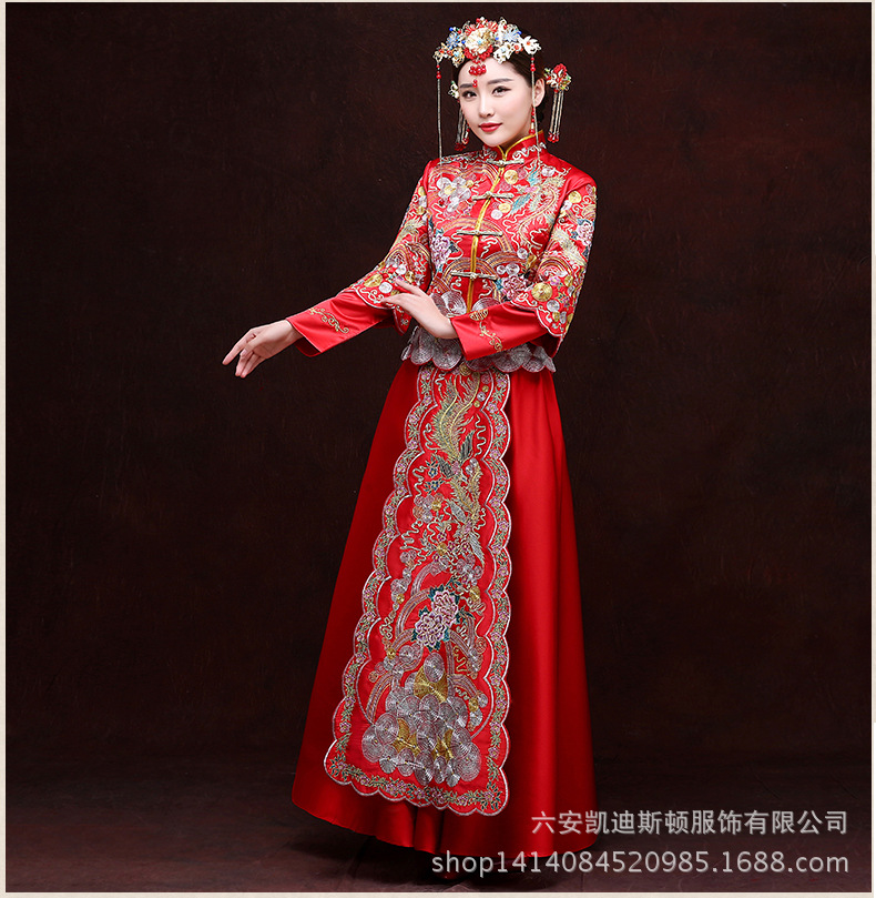新款新娘秋冬秀禾服 中式礼服复古敬酒服结婚嫁衣龙凤褂喜服