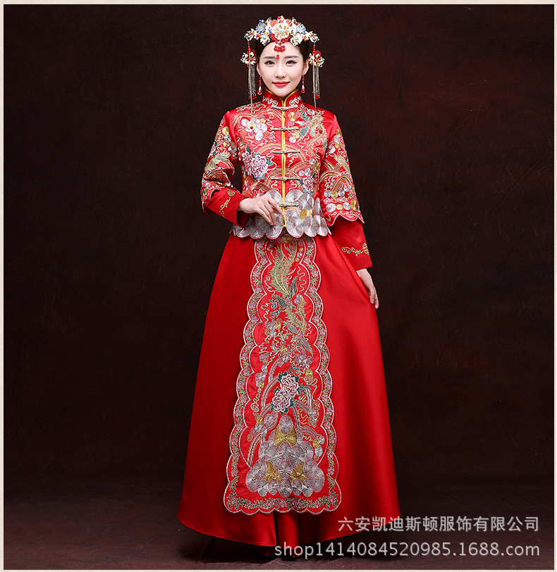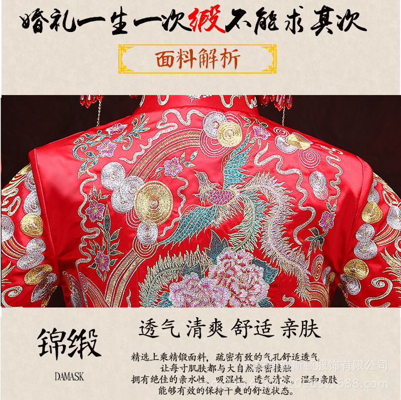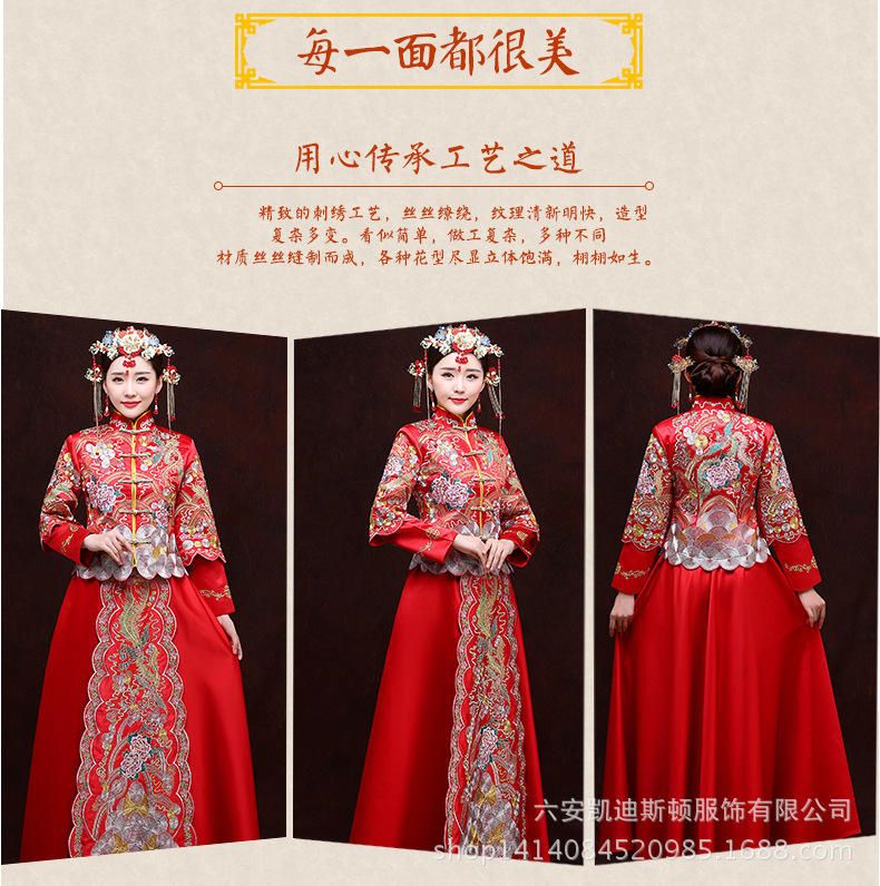 新款新娘秋冬秀禾服 中式礼服复古敬酒服结婚嫁衣龙凤褂喜服--聚爱城