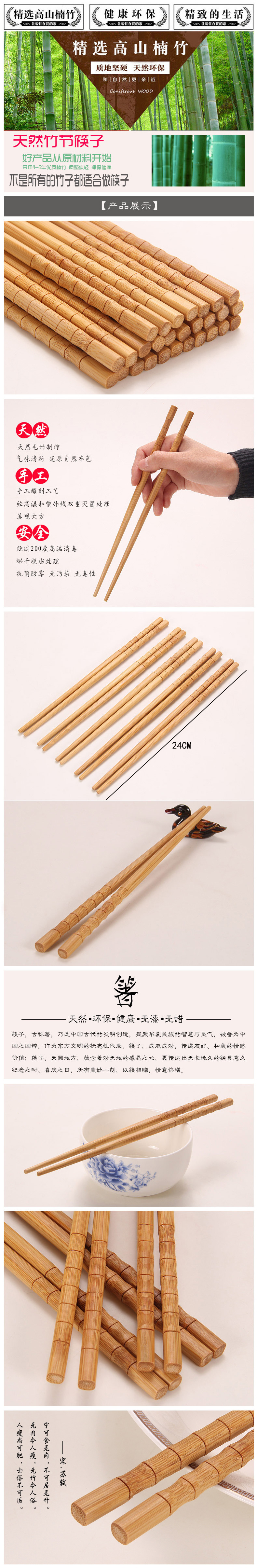 家用中式竹筷子无蜡原木筷子10双--聚爱城