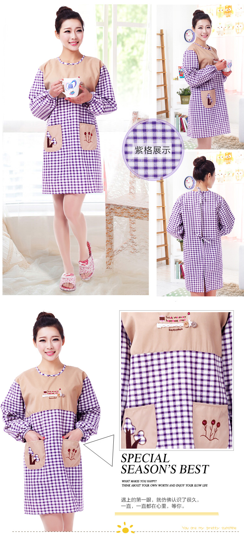 可爱反穿长袖款围裙--聚爱城