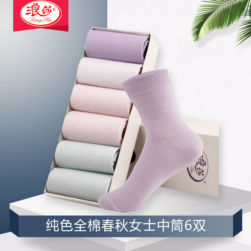 浪莎女中筒纯棉薄款纯色秋潮袜6双,全网统一价39.9,点评抵金5元
