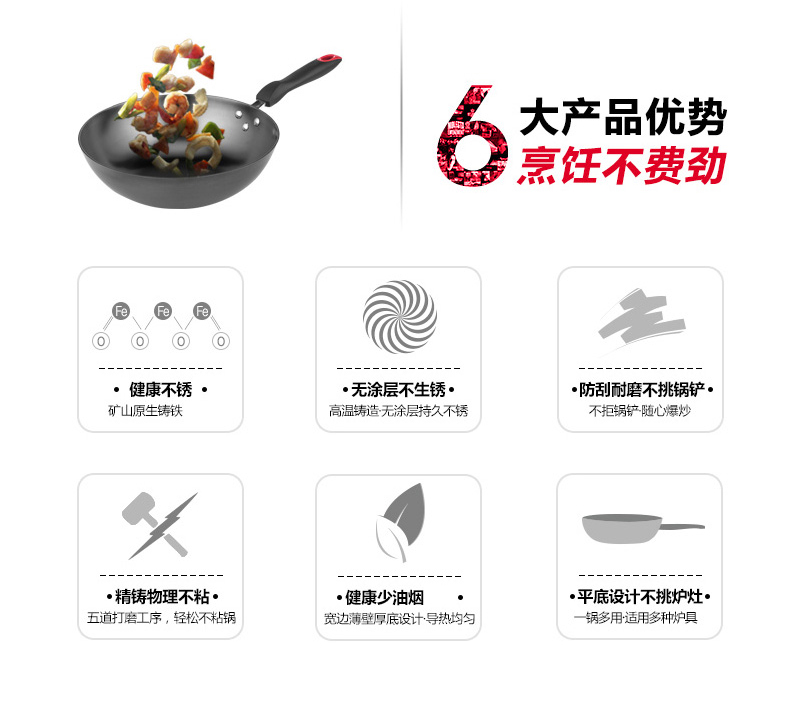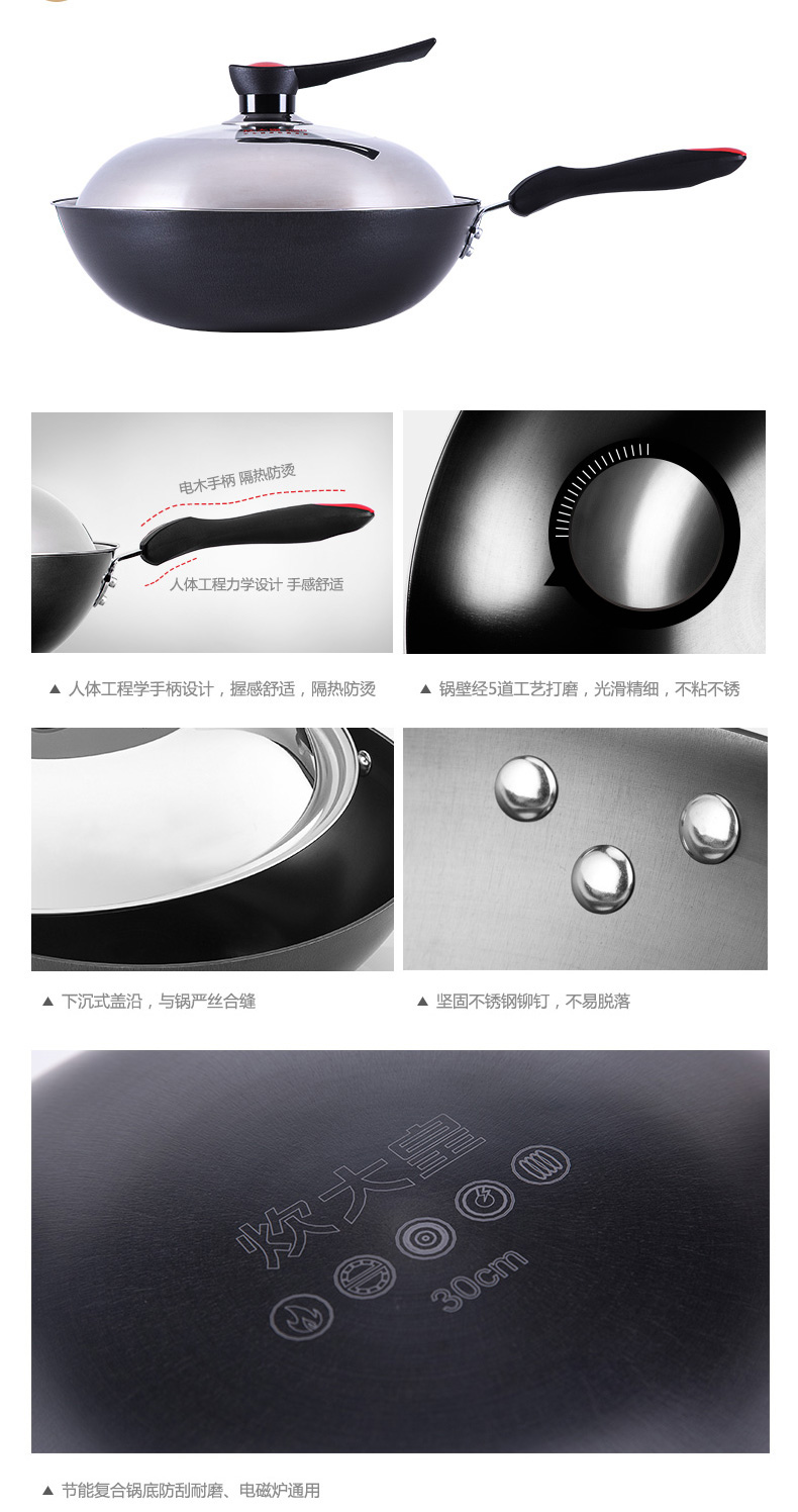 炊大皇传世铸铁无涂层炒菜锅30cm