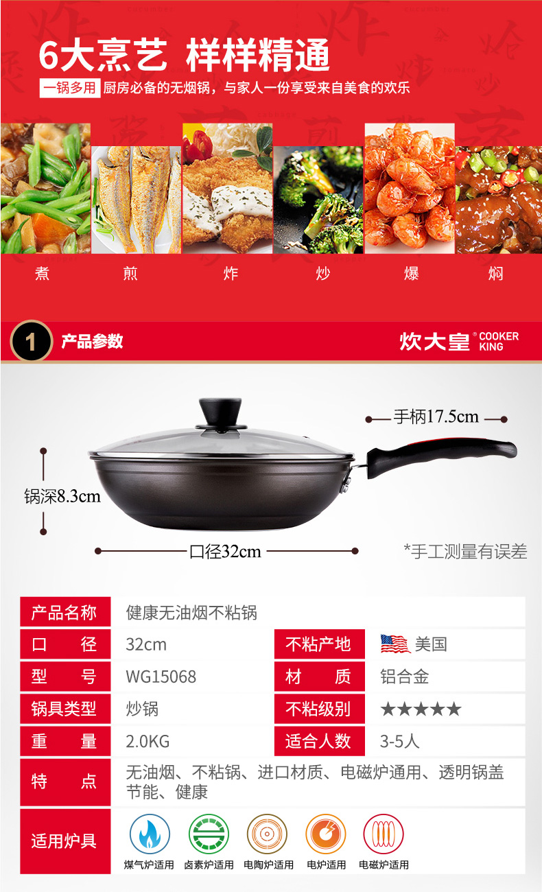 炊大皇无油烟不粘锅燃气电磁炉锅具32cm--聚爱城