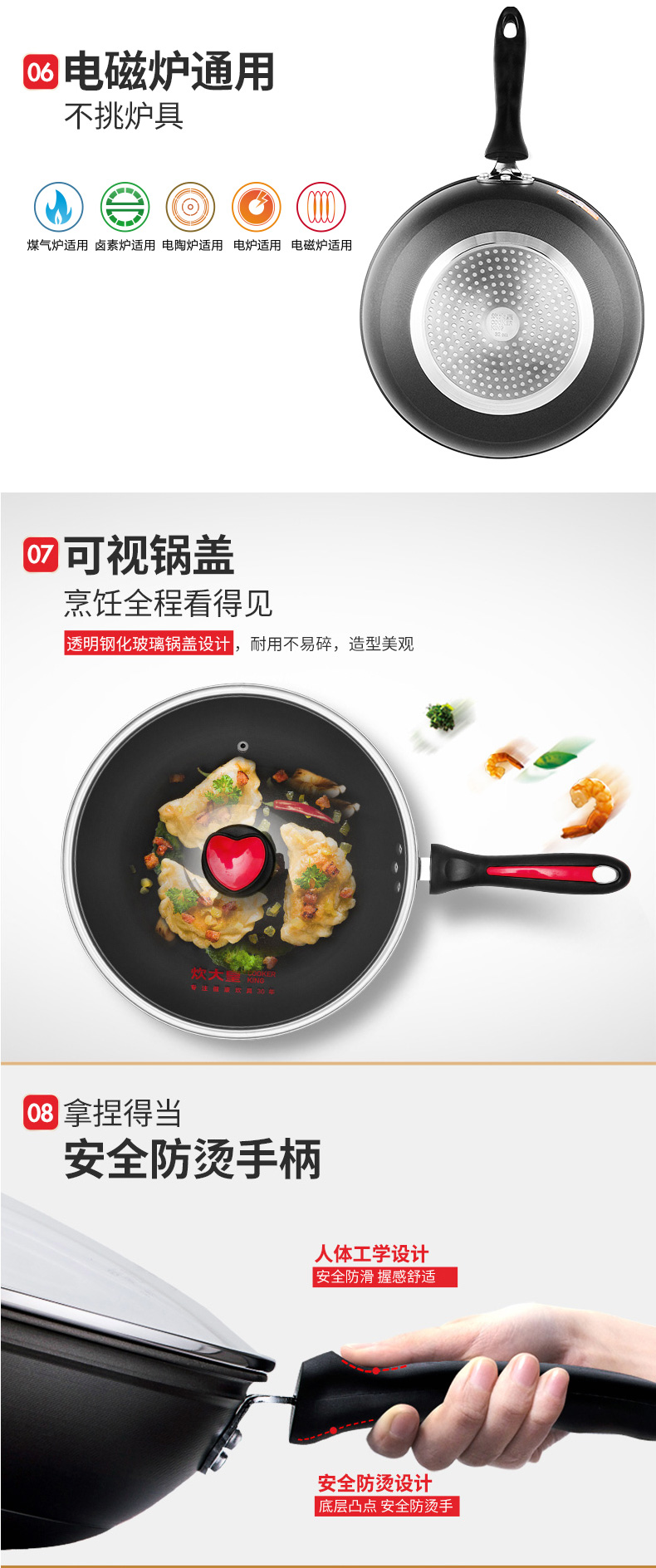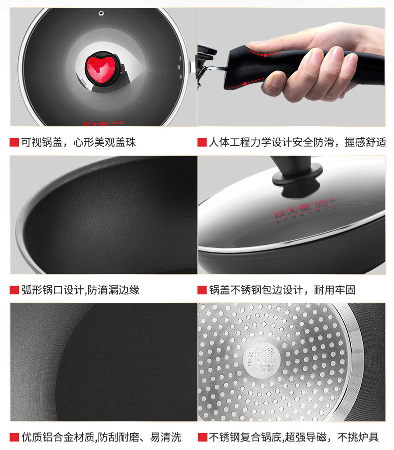 炊大皇无油烟不粘锅燃气电磁炉锅具32cm