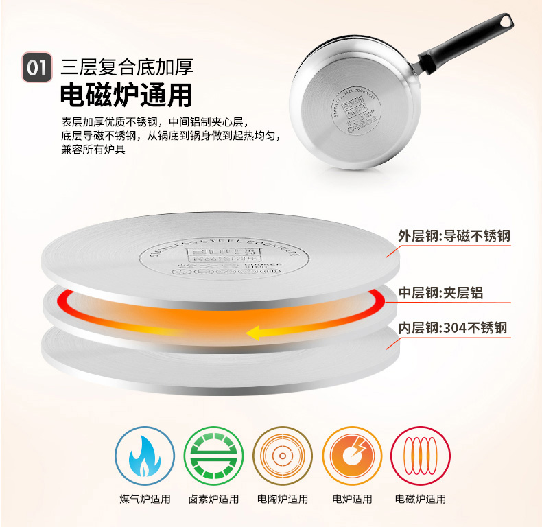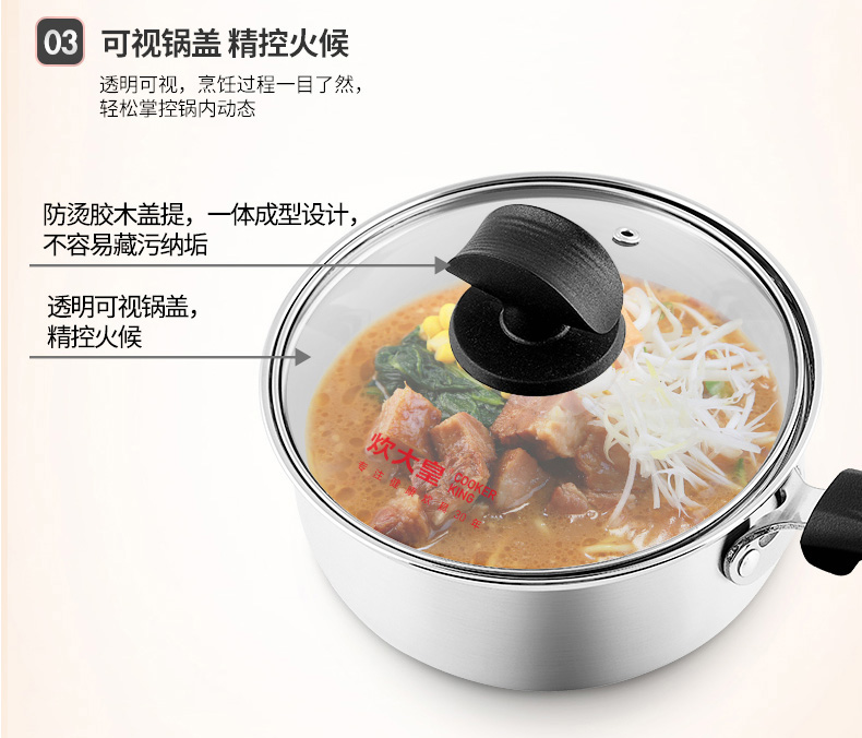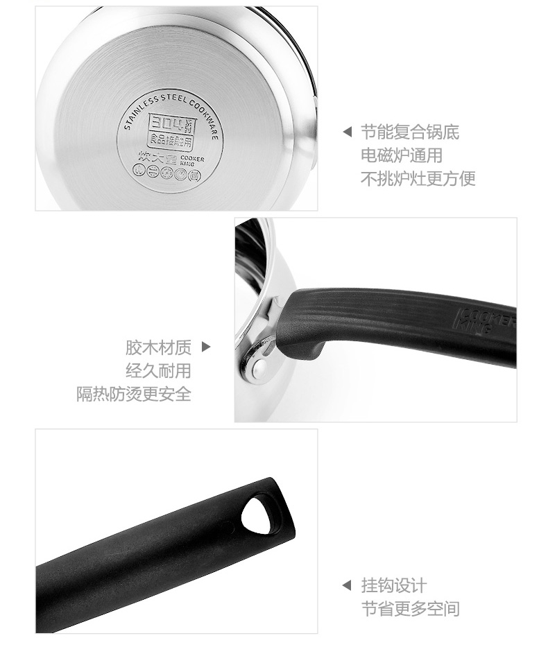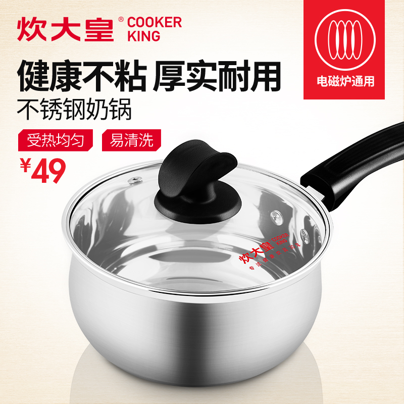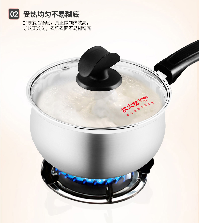 炊大皇 304不锈钢奶锅 无涂层 奶汤锅 16cm--聚爱城