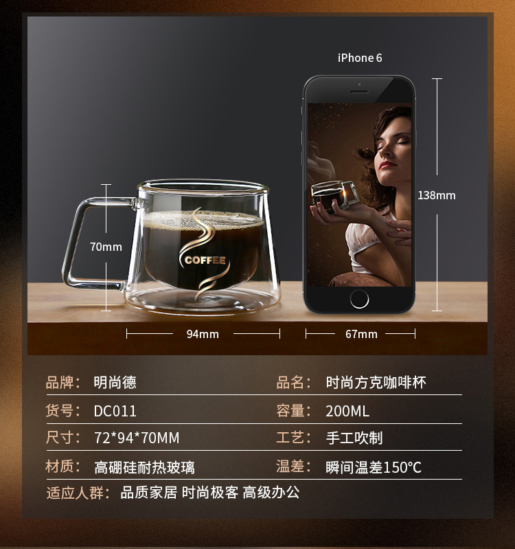 创意玻璃杯 高硼硅隔热双层咖啡杯
