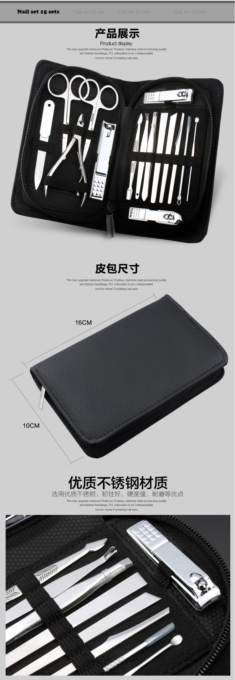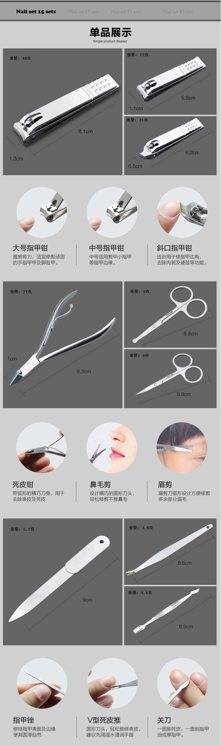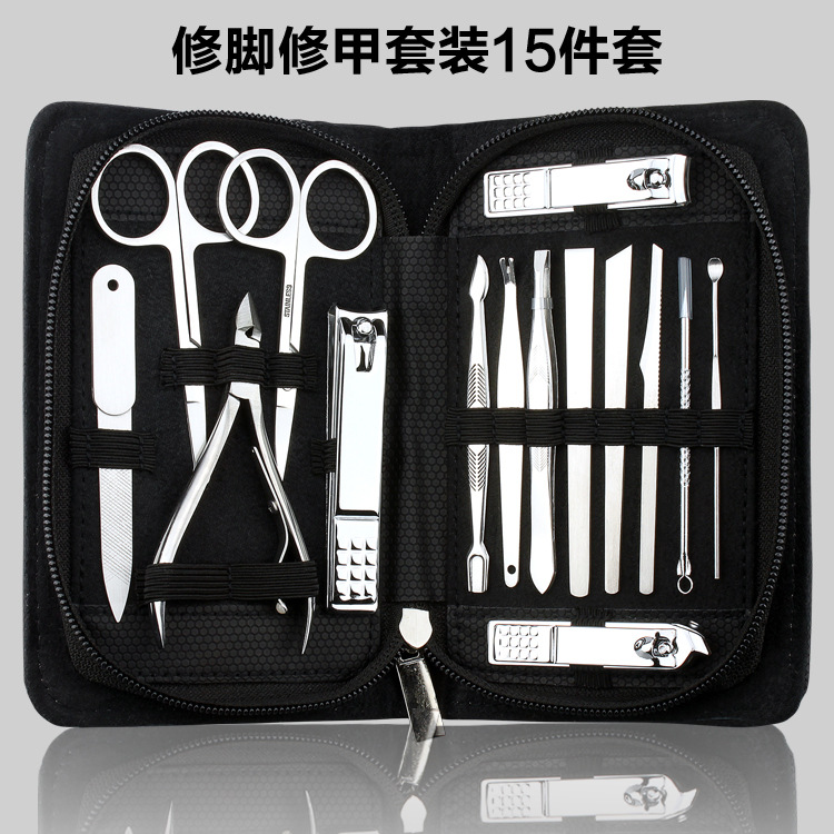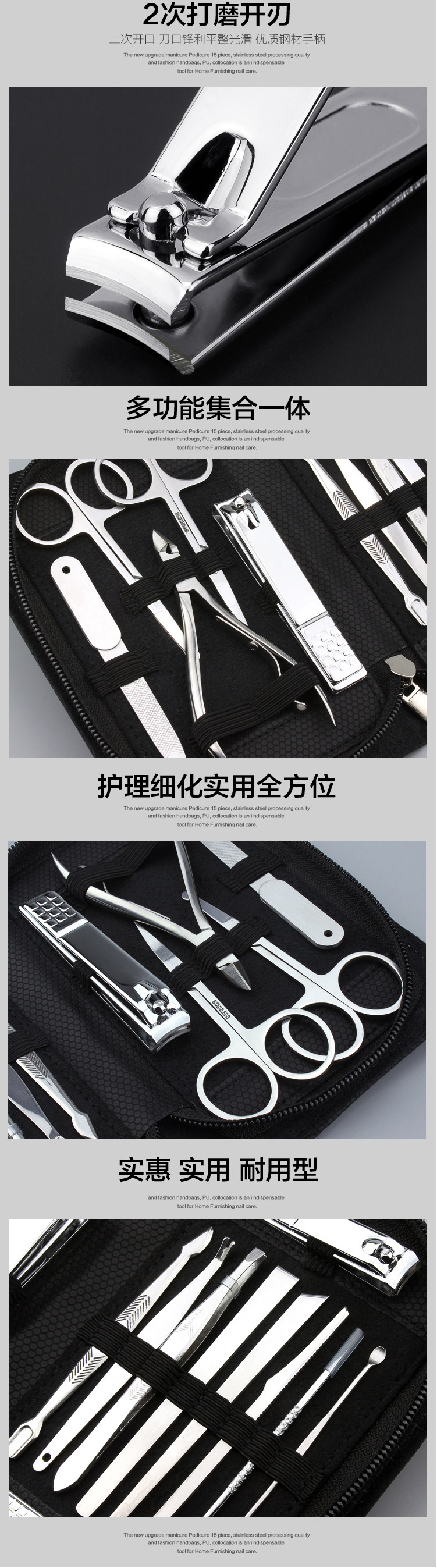 指甲刀套装15件套指甲剪修脚刀指甲钳修甲套装--聚爱城