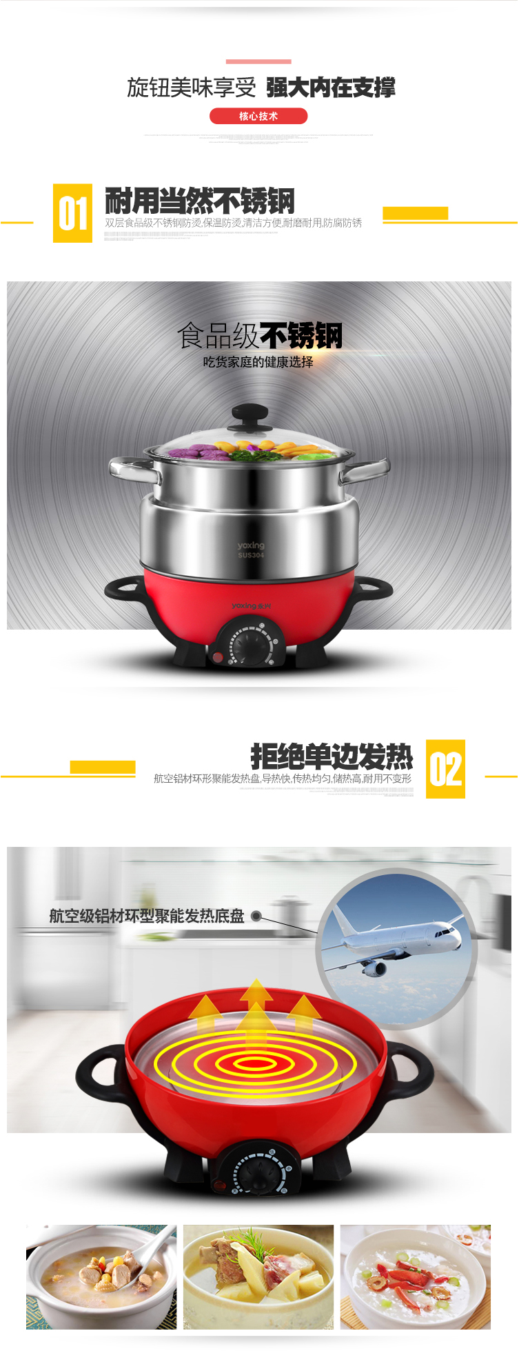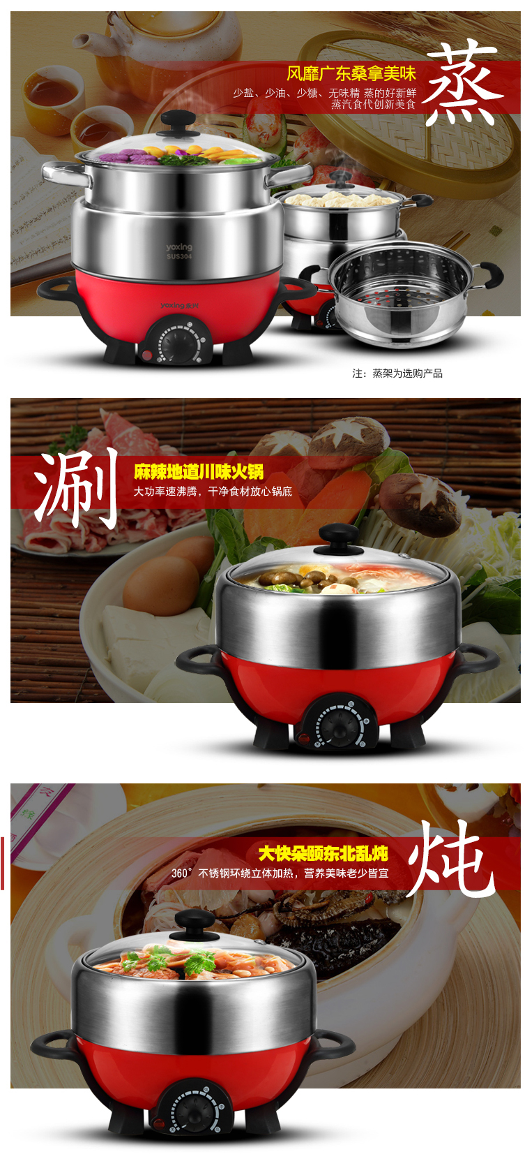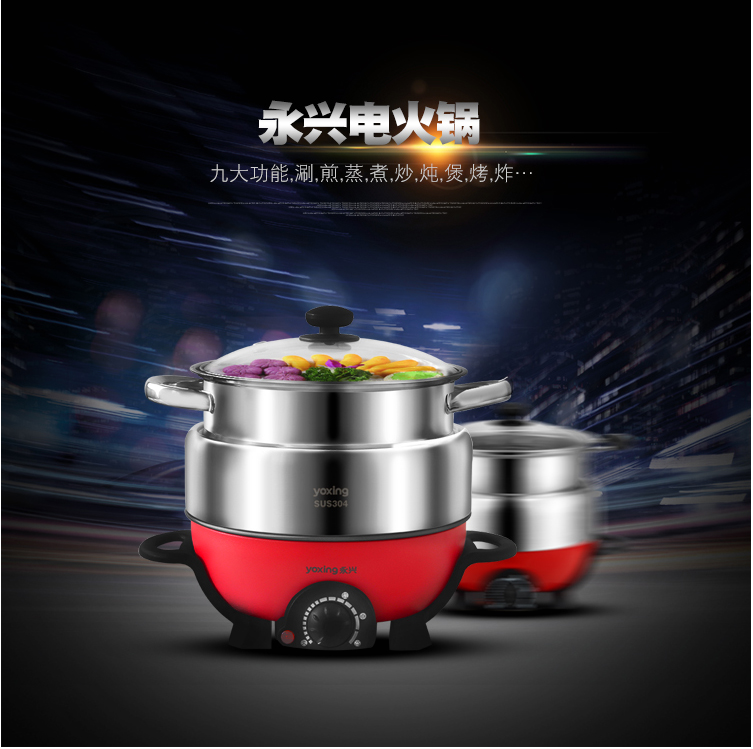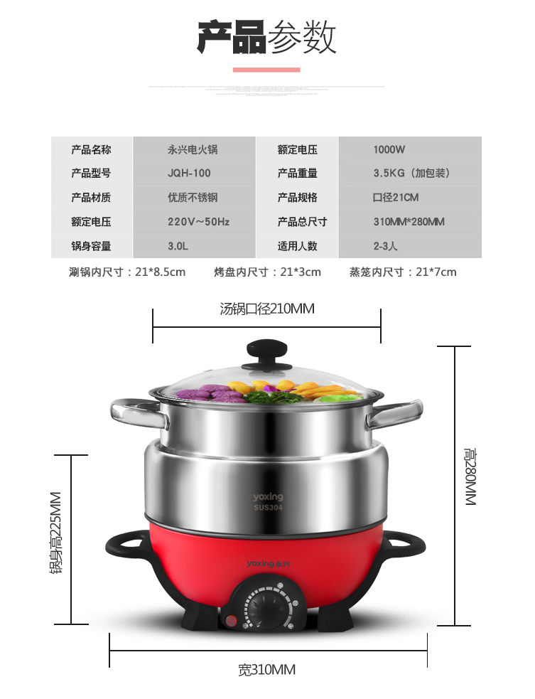 304不锈钢电火锅JQH-100多功能3L电热锅