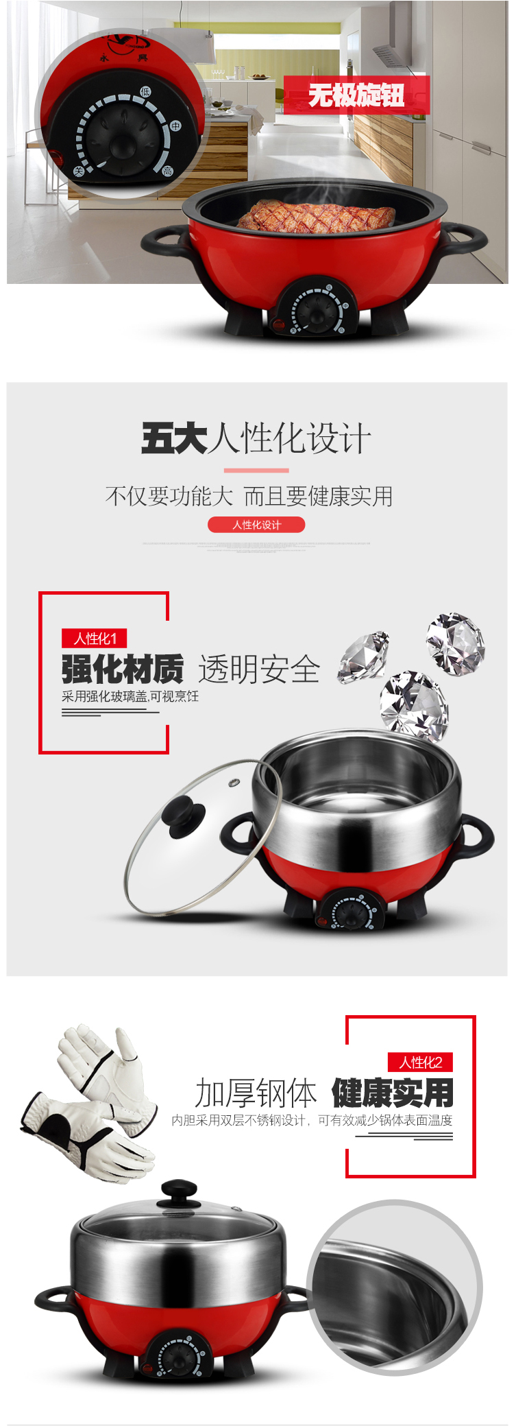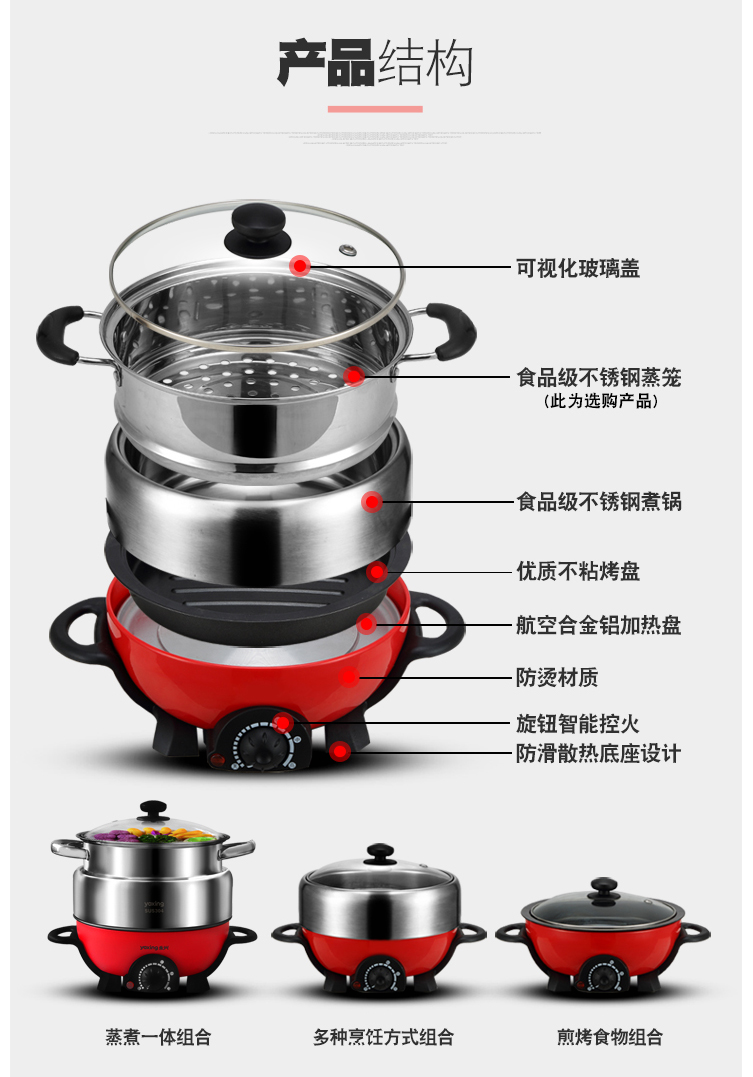 304不锈钢电火锅JQH-100多功能3L电热锅--聚爱城